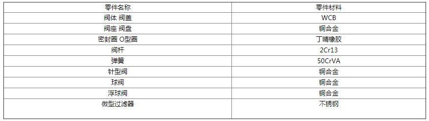 900X-16緊急關閉閥主要零件材料: